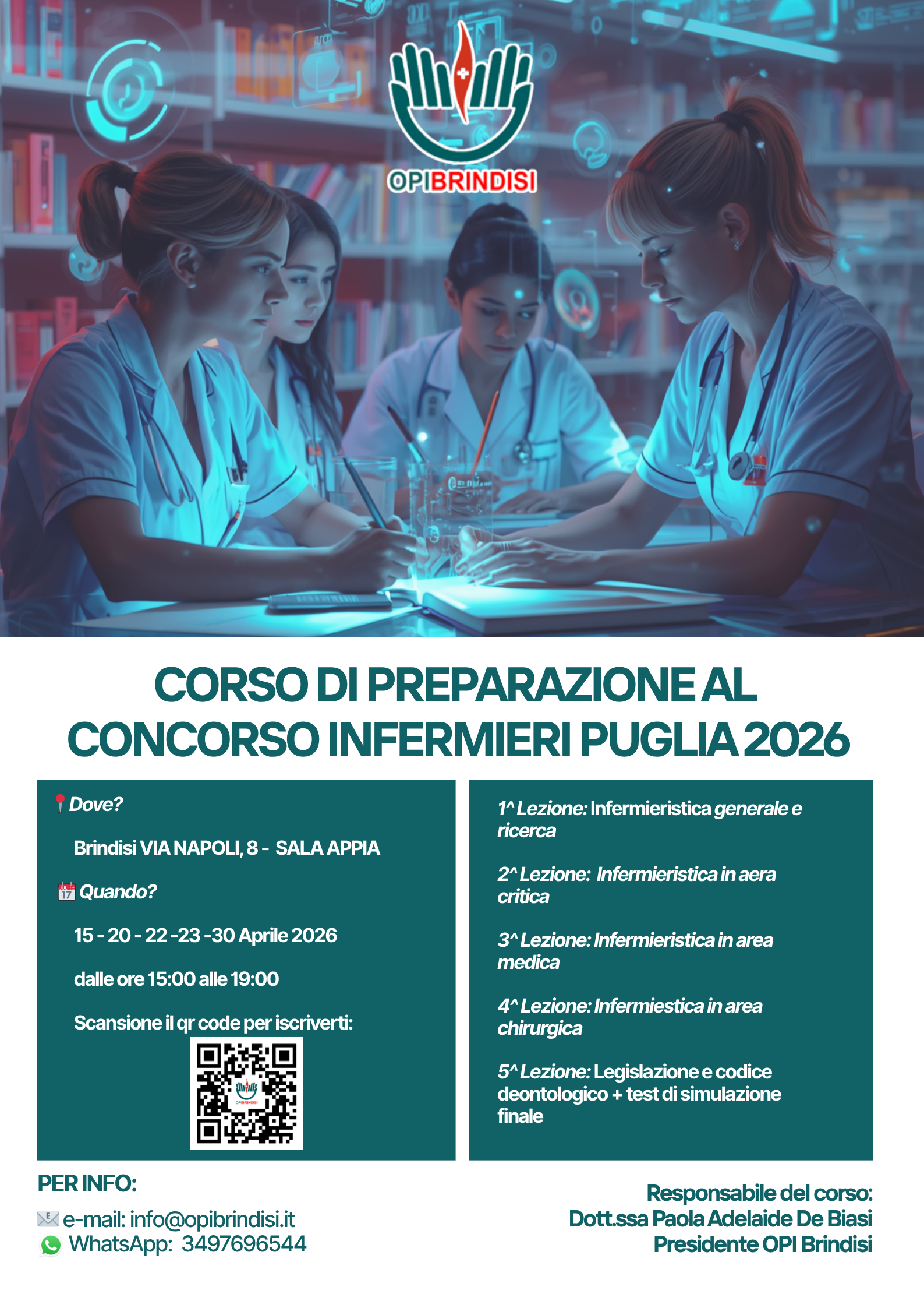 CORSO DI PREPARAZIONE AL CONCORSO INFERMIERI PUGLIA 2026